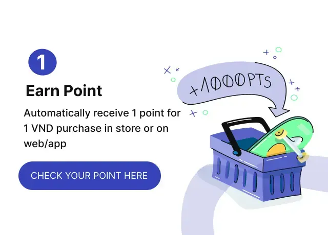 - Automatically earn 1 point for every 1 VND spent in-store or on the website/app.